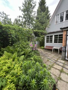 Ухоженный земельный участок при доме площадью 700 кв.м. полностью застлан рулонным газоном, по периметру с соседом высажены туи, декоративными деревья и кустарники.