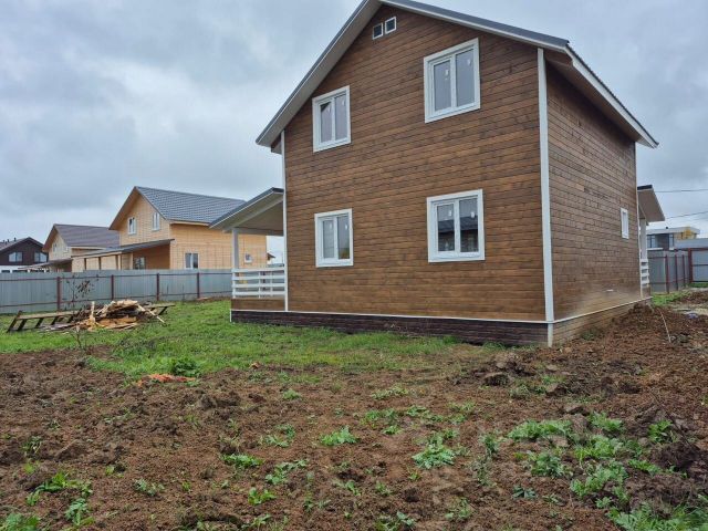 Дом с интерьерным фасадным освещением, балконом на втором этаже, открытой террасой с выходом из зала, крыльцом, крытой стоянкой для двух легковых автомобилей. Благоустроенная территория: на участке посеян газон, при входе в дом, а также в области парковки отсыпано щебнем.