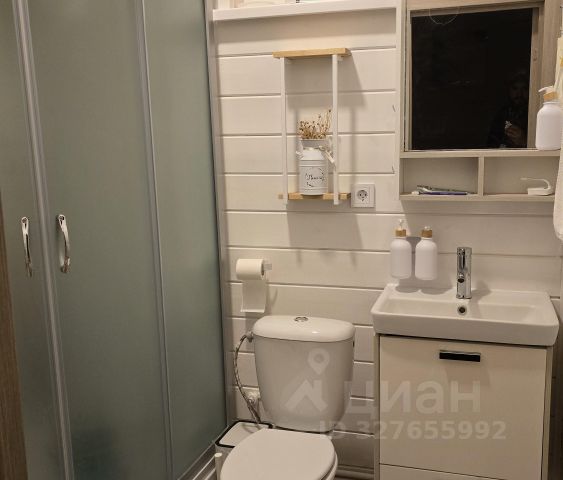 В санузле керамическая плитка, ванная, унитаз, умывальник, зеркало.