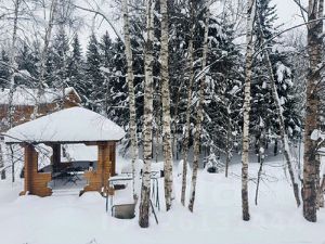 ID 537519. КП Полесье. Дом 350 кв.м с отделкой в стиле современной классики, на участке 15 соток с ландшафтным дизайном в охраняемом коттеджном поселке. Планировка дома: 1 этаж: просторный холл, большая гардеробная, гостевой санузел, гостиная с камином и панорамными окнами, кухня, столовая с выходом на патио, кабинет, гостевой санузел, постирочная, котельная, теплый гараж на две машины, навес на два машиноместа; 2 этаж: просторный холл c TV-зоной, баром и выходом на эксплуатируемую кровлю, мастер-спальня с ванной и гардеробной комнатами, детская спальня с балконом, ванной комнатой и гардеробной, гостевая спальня с ванной и гардеробной комнатами. На участке расположены: банно-жилой комплекс (250 кв.м) из бруса и дом для персонала (60 кв.м), беседка. Проведены ландшафтные работы, высажены крупномеры и лесные деревья. Банный комплекс оформлен известным дизайнером. В комплексе гостиная со вторым светом и камином с изразцами, чайная комната с настоящей русской печью со спальным местом, SPA-зона (хаммам, русская баня, купель), комната для спорта, уютная спальня с ванной комнатой. Номер объекта: #1/537519/13364