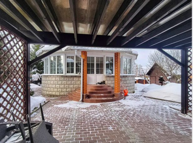 О доме: построен в 2022 г., уже не первый сезон верно служит своему владельцу; фундамент: ж/б сваи 3 м: дом: брус 200 х 100 мм с утеплением 200 мм каменной ватой, ветрозащитой, сеткой от грызунов и с шумоизоляцией. Внешняя отделка: фиброцементные панели + хвойный планкен. Кровля: ПВХ-мембрана плоская с уклоном 30 на 4 водостока, утепление 200 мм. Входная дверь с терморазрывом, окна с двухсторонней ламинацией двухкамерные стеклопакеты Rehau, качественная и надёжная фурнитура Roco.