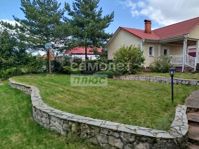 Земельный участок прямоугольной формы, угловой, рядом с лесом, по периметру огорожен металлическим забором (профлист), между лесом и участком асфальтированная дорога, зимой чистится регулярно, дорога у главных ворот грунтовая с утрамбованным щебнем, подъезд круглогодичный. На участке обустроен дренаж. В сторону леса две калитки и автоматические сдвижные ворота, открывающие въезд на задний двор (парковка на две машины, покрыта щебнем). Главный въезд оборудован автоматическими воротами, парковка на две машины, при необходимости можно четыре покрытие тротуарная плитка (есть не критичные просадки плитки). На участке газон, садовые деревья, вдоль забора плодоносящий виноград, есть место под парник (подведено электричество для оборудования парника), оборудована система полива деревьев, есть компостная яма.