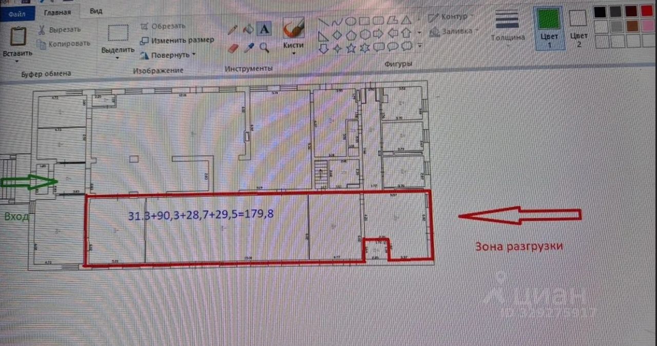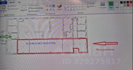 Два входа, зона разгрузки, высота потолков 3.5 м, в здании располагается столовая, Военторг.