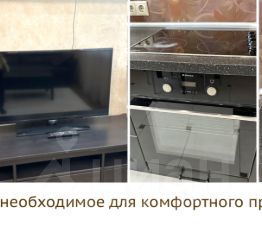 Есть все необходимое для комфортного проживания: спальные места, кожаный диван, телевизор, кухонный гарнитур, холодильник, стиральная машина, пылесос, микроволновая печь, кухонные принадлежности.