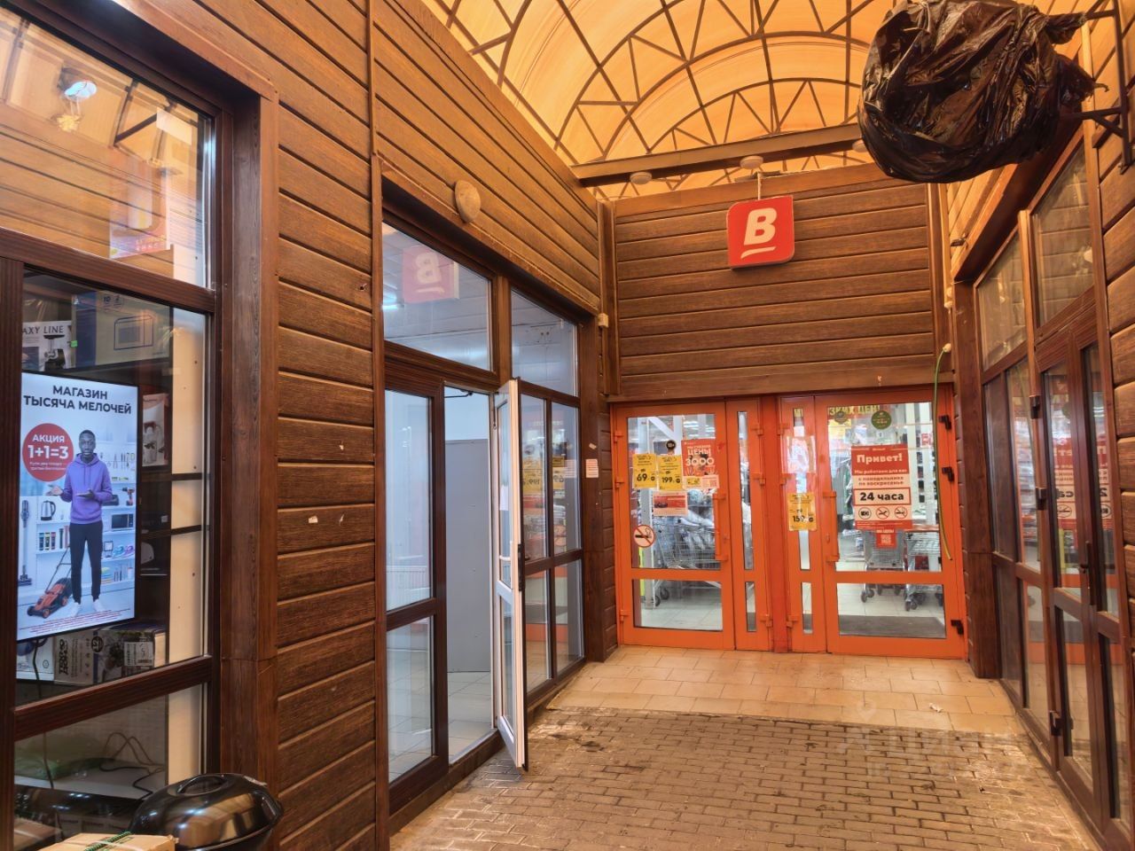 Продаётся торговый павильон 50 кв. м в г. Чехов, мкр. Губернский, д. 2. Первый от входа в супермаркет Верный — максимальный поток покупателей проходит непосредственно мимо помещения.