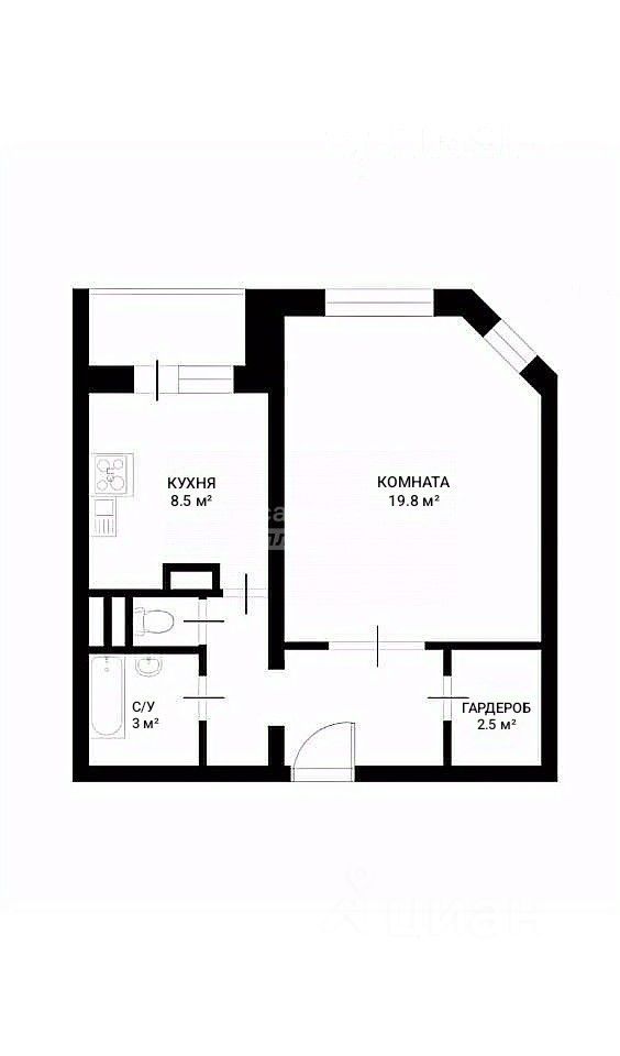 • Общая площадь 42.1 м², комната 19.8 м² — просторно