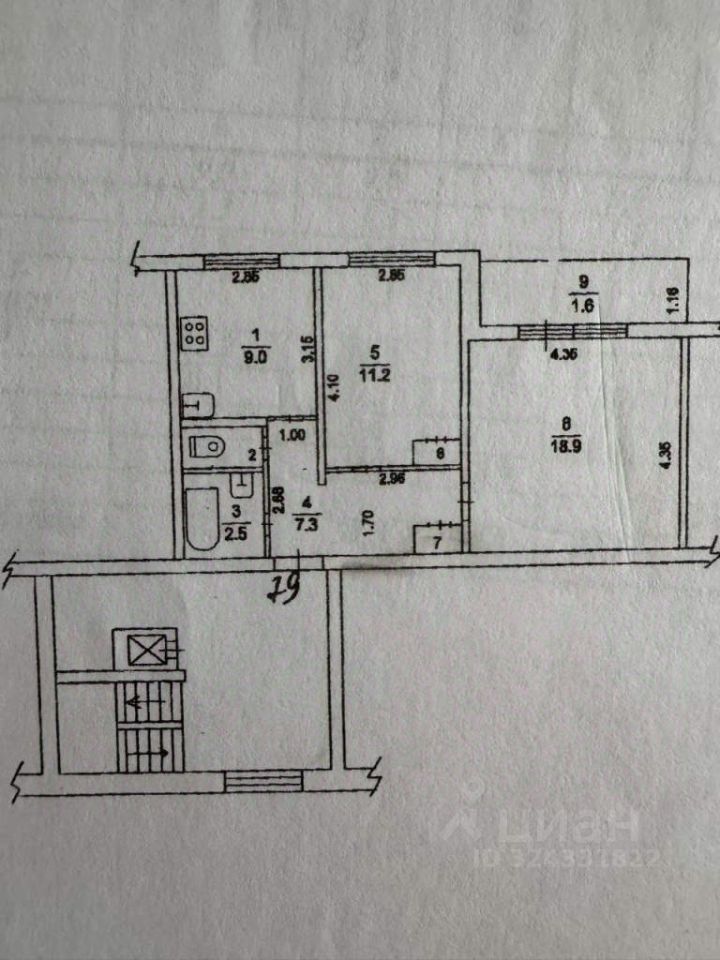 Расположена в районе Олимпийского на 2-м этаже, девятиэтажного дома.