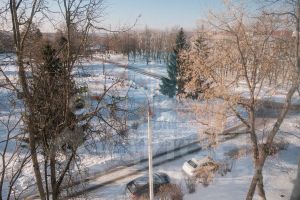 Состояние - хорошее: покрытие пола - ламинат, натяжные потолки, входная дверь - железная, окна - пластиковые стеклопакеты, выходят во двор. Балкон остеклён.