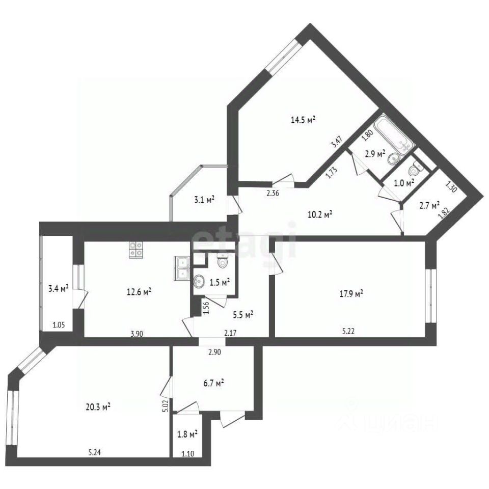 Просторная трехкомнатная квартира площадью 107 кв. м расположена на улице Земская в Чехове.
