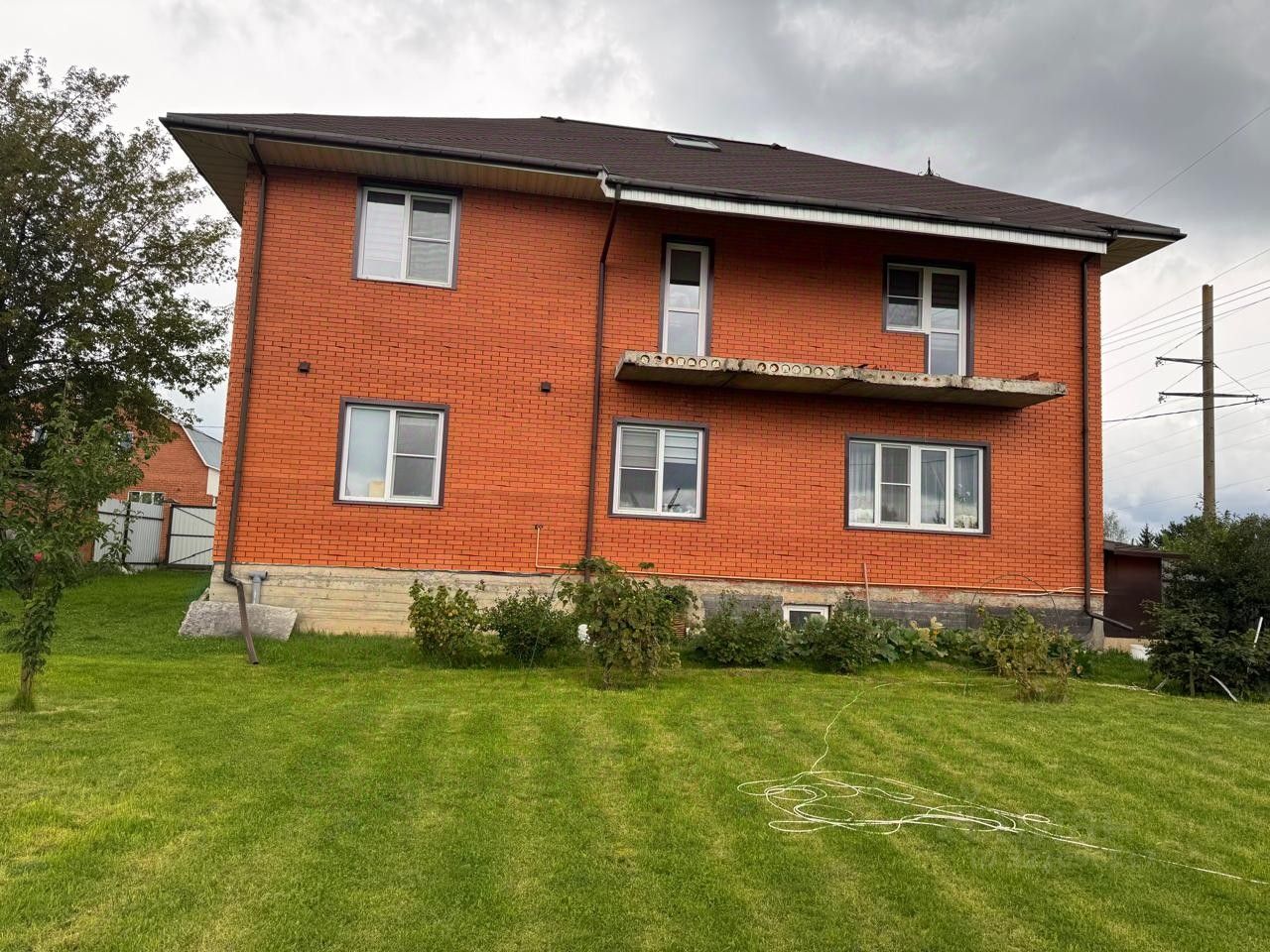собственник строил дом для себя — надёжный фундамент-плита, стены из газосиликатного блока облицованы кирпичом, мягкая кровля. Все центральные коммуникации уже в доме: газ, вода, канализация.