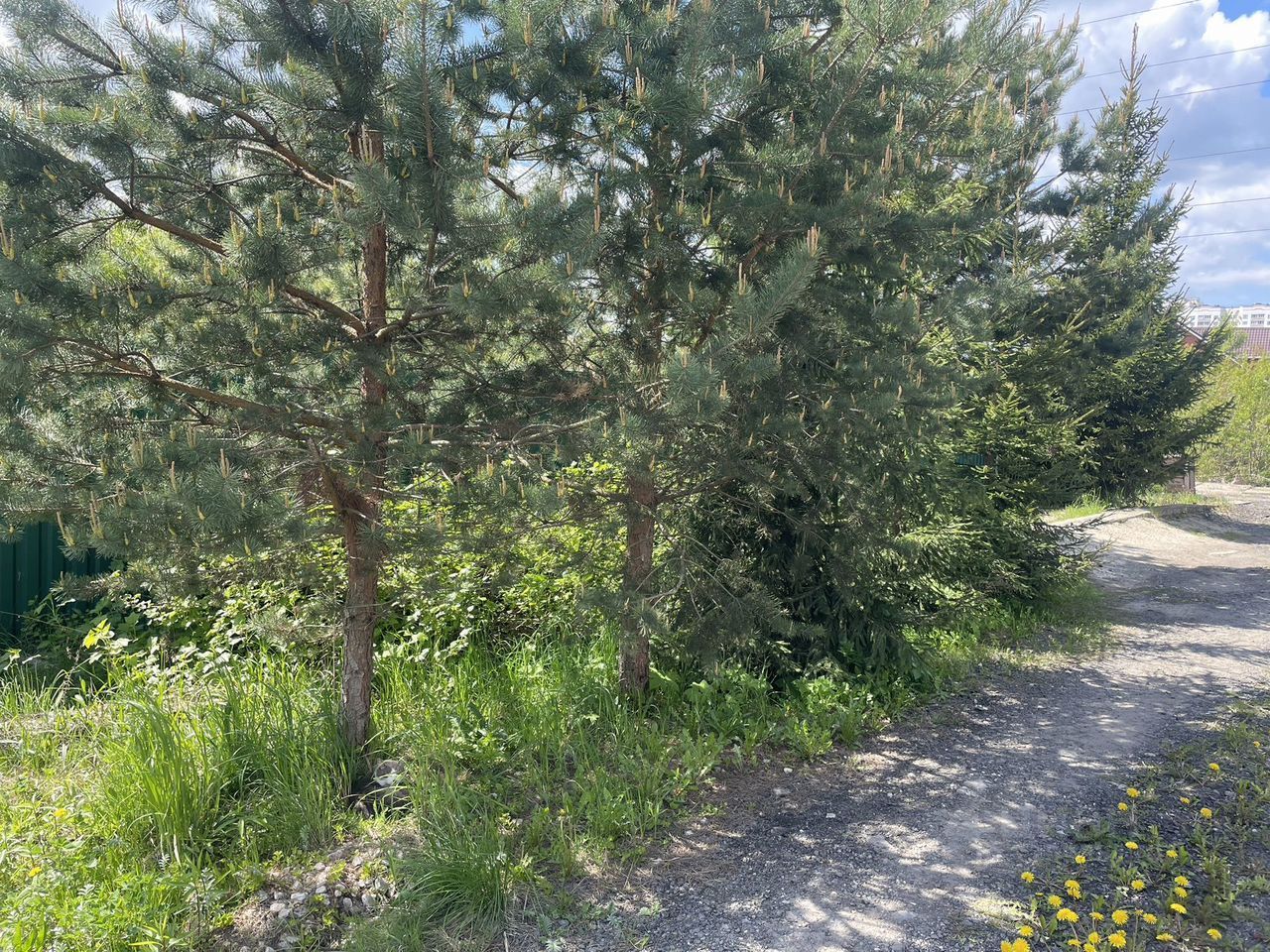 Участок огорожен со всех сторон забором. Имеются плодово-ягодные и дикорастущие деревья.