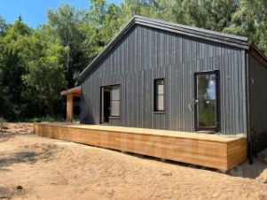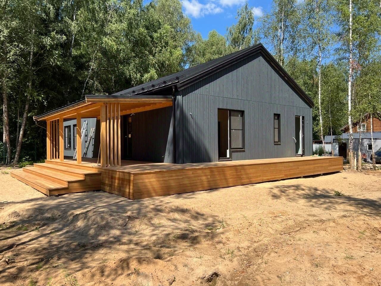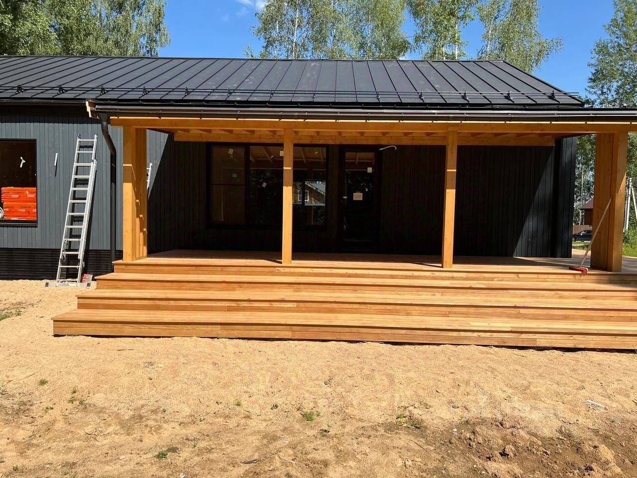 Отделка дома планкен, кровля кликфальц, снегозадержатели, водосточная система.